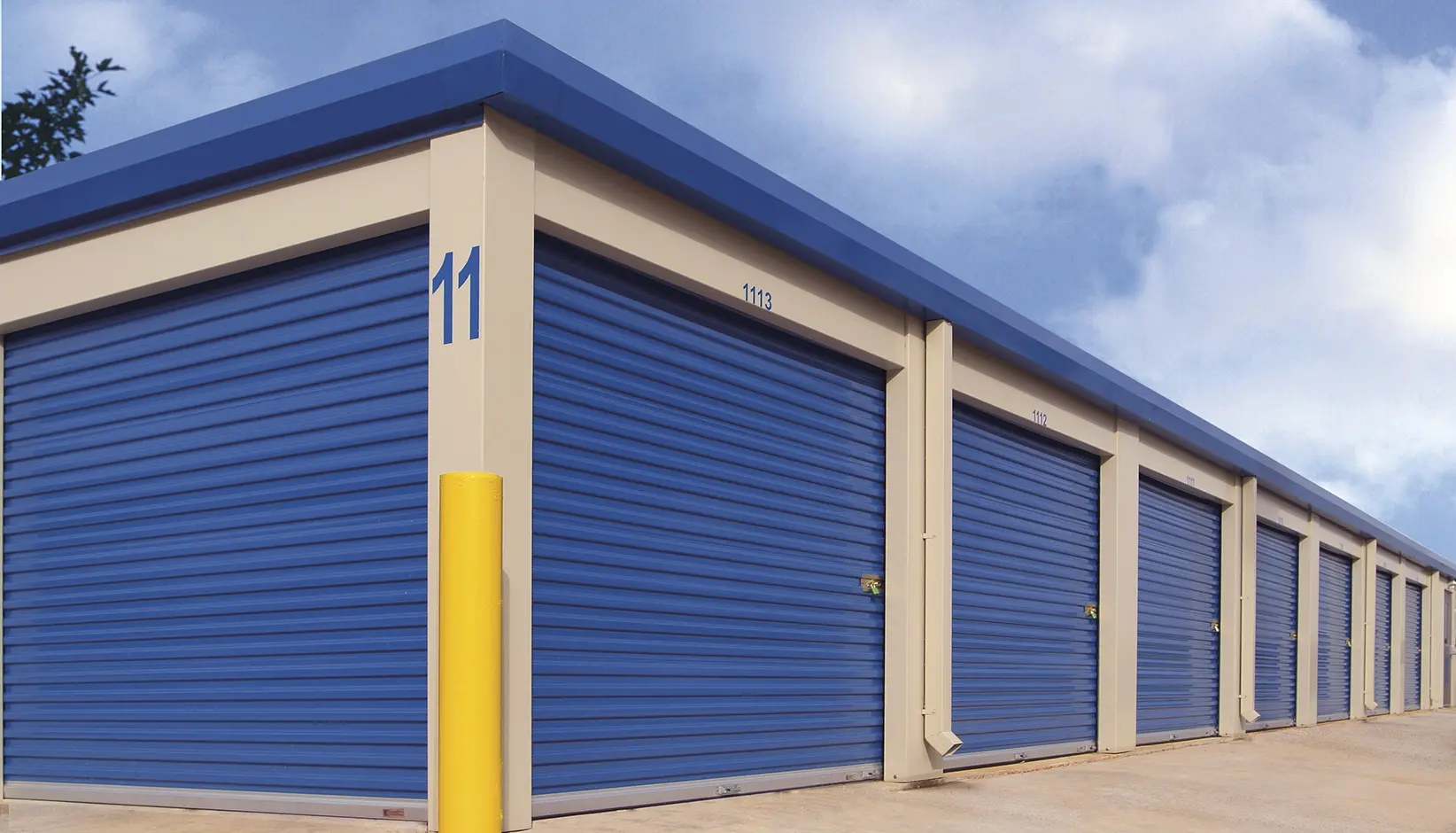 Roll-up sheet doors are ideal for mini warehouses and self-storage facilities with the goal of added security. Constructed from 26ga by 24 in wide sheets of steel roll formed with integral grooves that are hemmed together to form a continuous sheet guided vertically by roll formed guides.